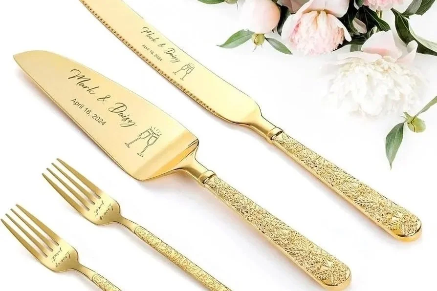 An elegant, professional set ensures the cake-cutting moment feels composed and photographs clearly, without visual distraction. Why I recommend it: A refined knife and server support a polished cake-cutting moment and tidy service, making the cake-cutting photos look intentional and avoiding last-minute mismatched utensils.