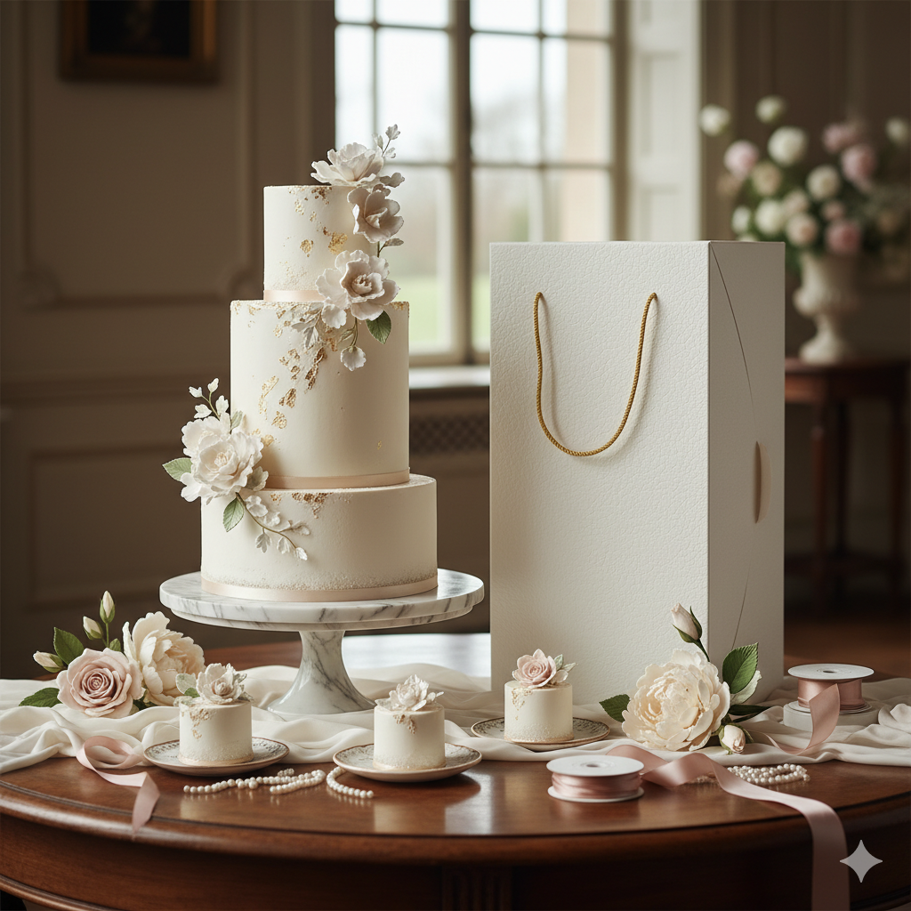 Arrival & Care: Cakes are delivered and perfectly staged 2-3 hours before your event. During warmer periods, refrigeration upon earlier delivery is essential to maintain the exquisite quality and beauty of your bespoke cake.