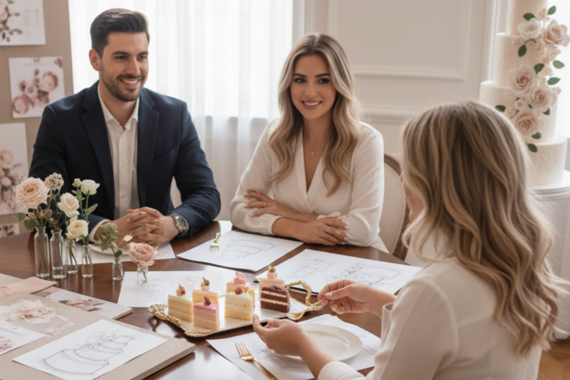 Opt for our In-Person Tasting and Free Consultation Combo. This personal session allows you to sample our flavours while meeting directly with our expert cake designer to discuss your vision.